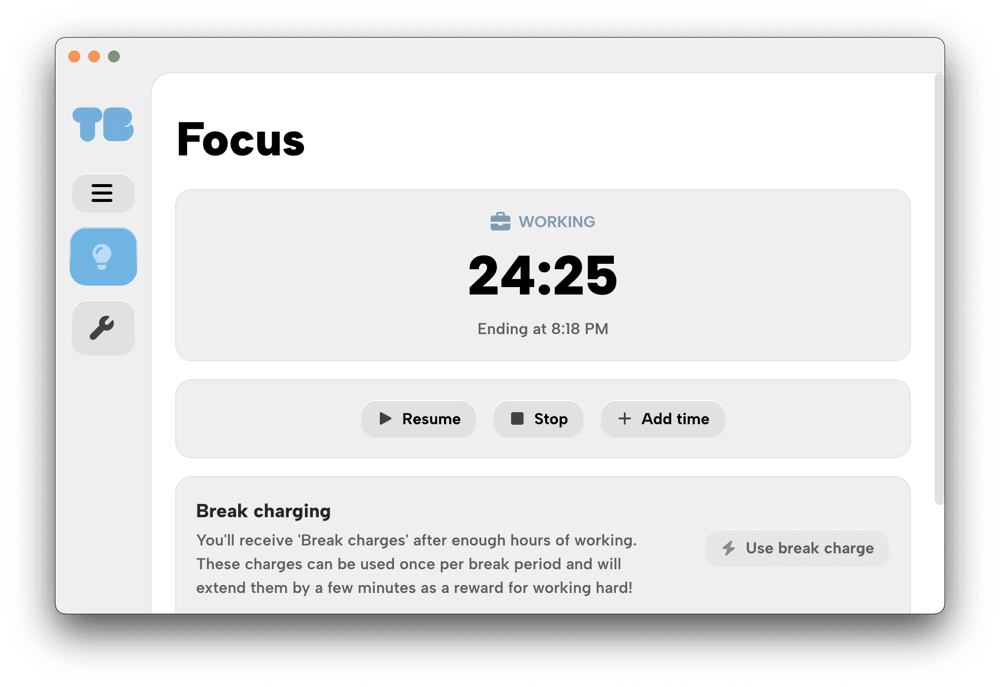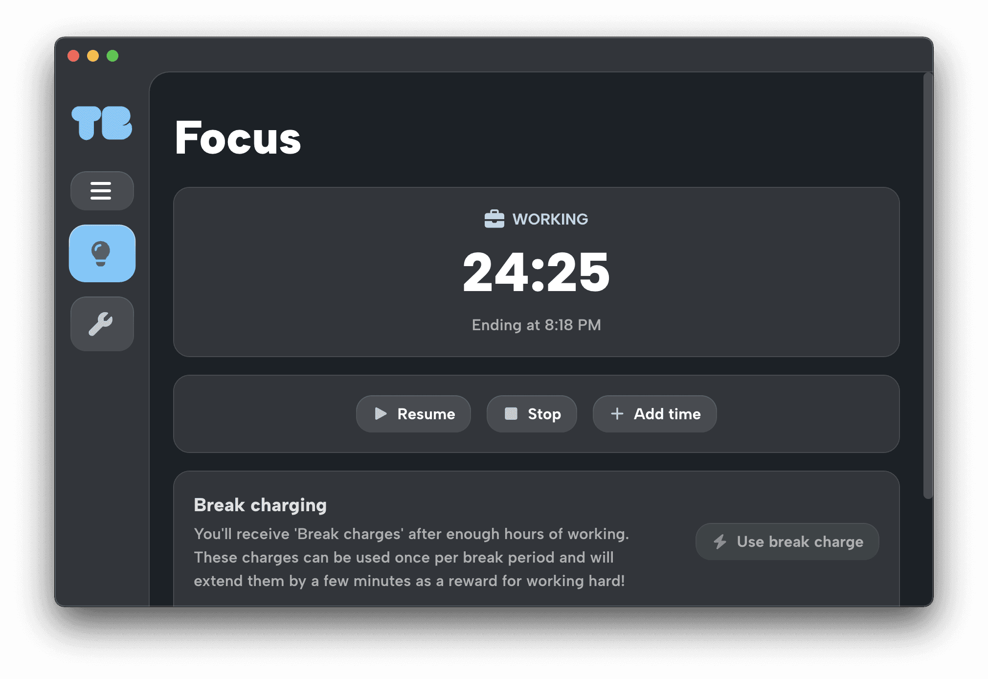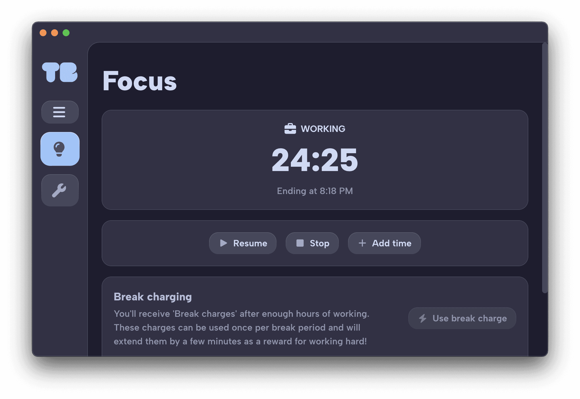 Get 'break charges' while working which can extend your breaks a little bit as a reward for working hard.