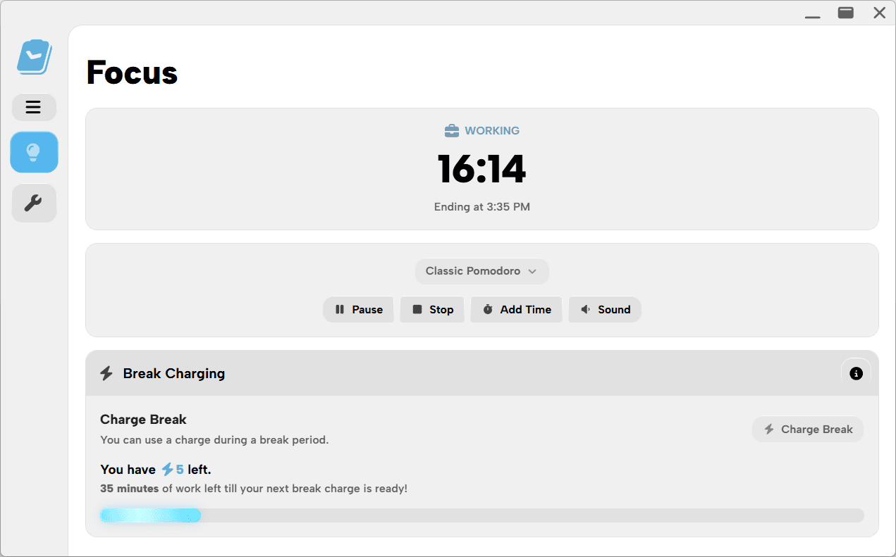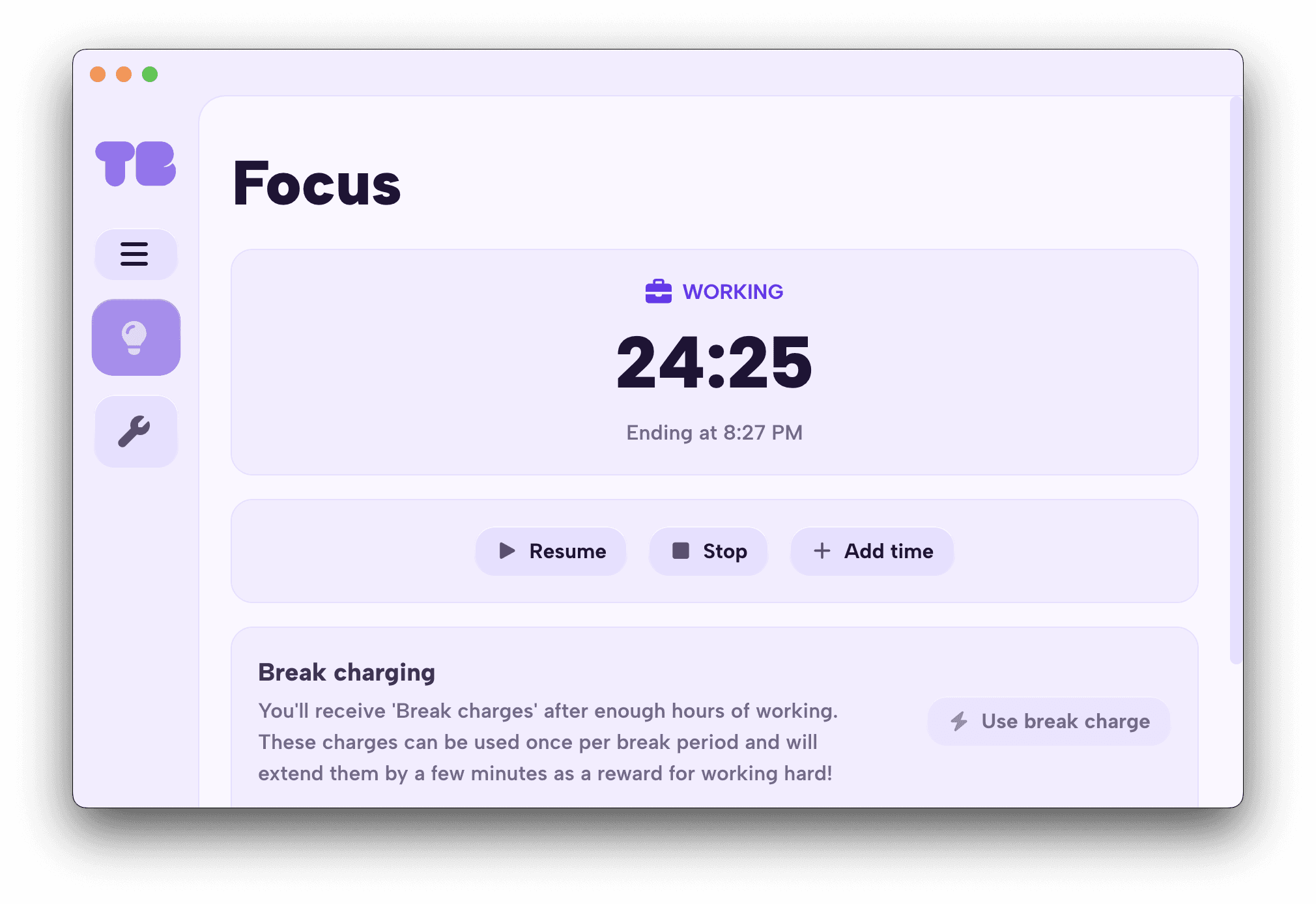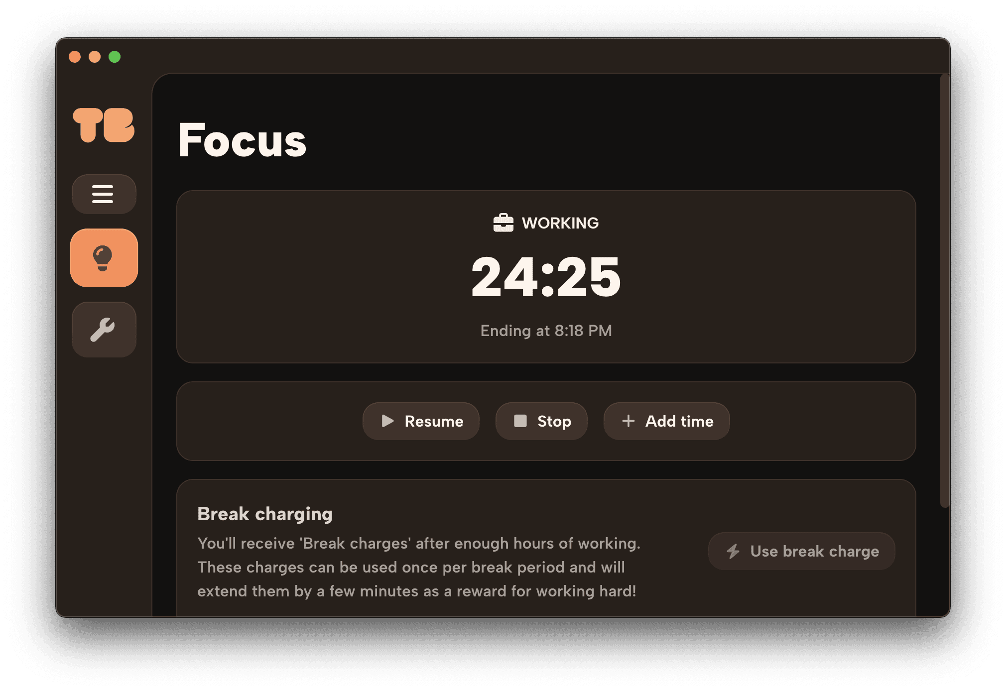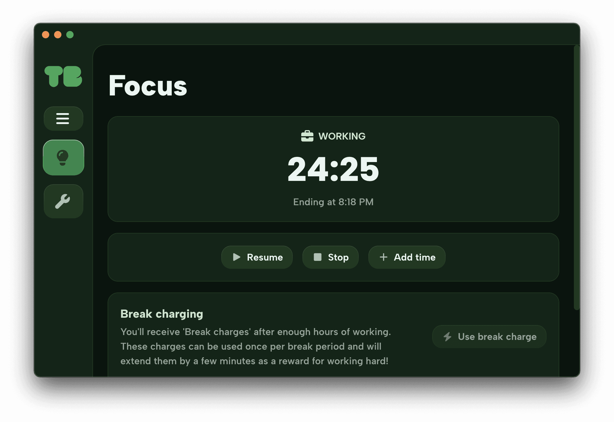 Get 'break charges' while working which can extend your breaks a little bit as a reward for working hard.