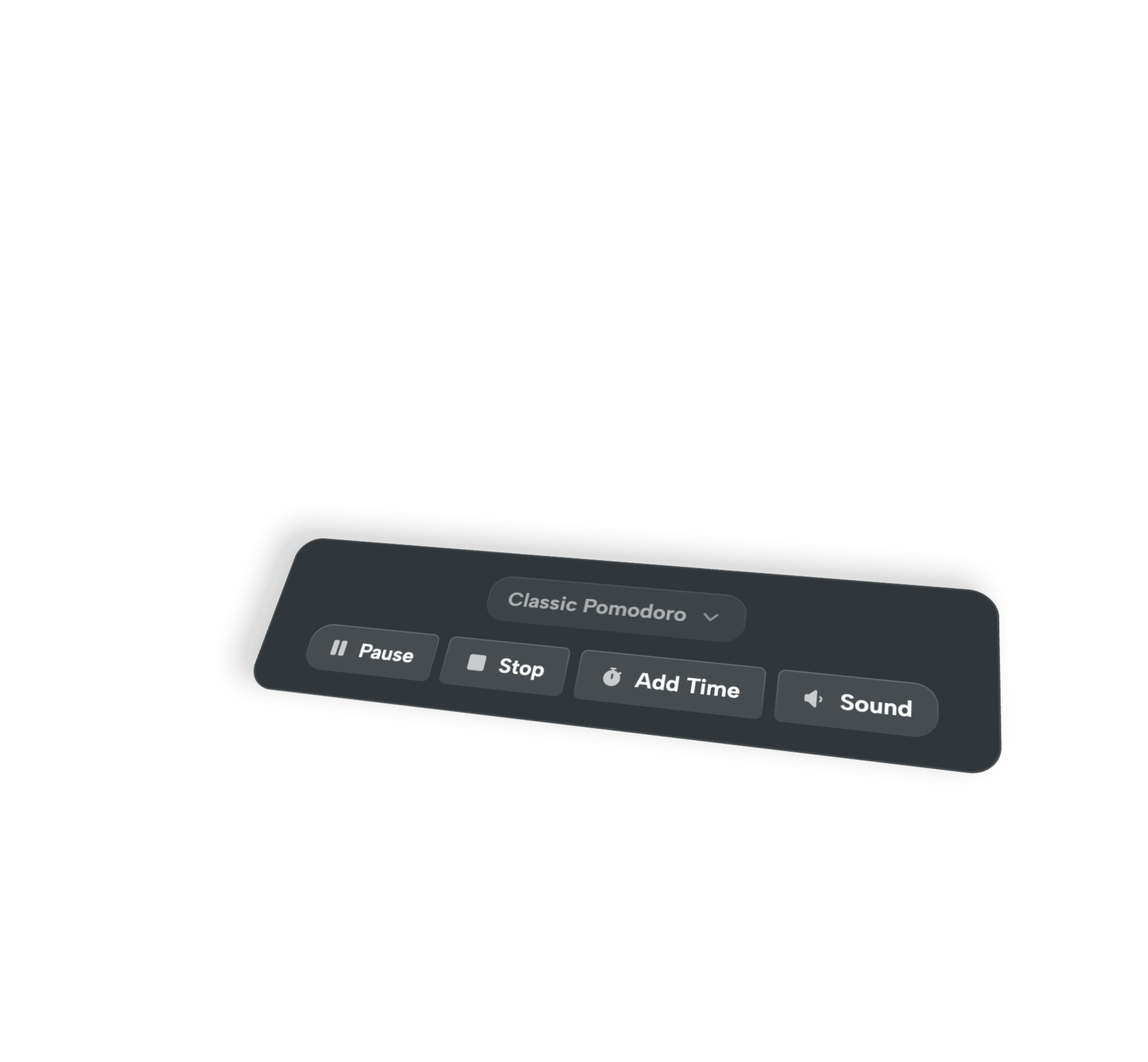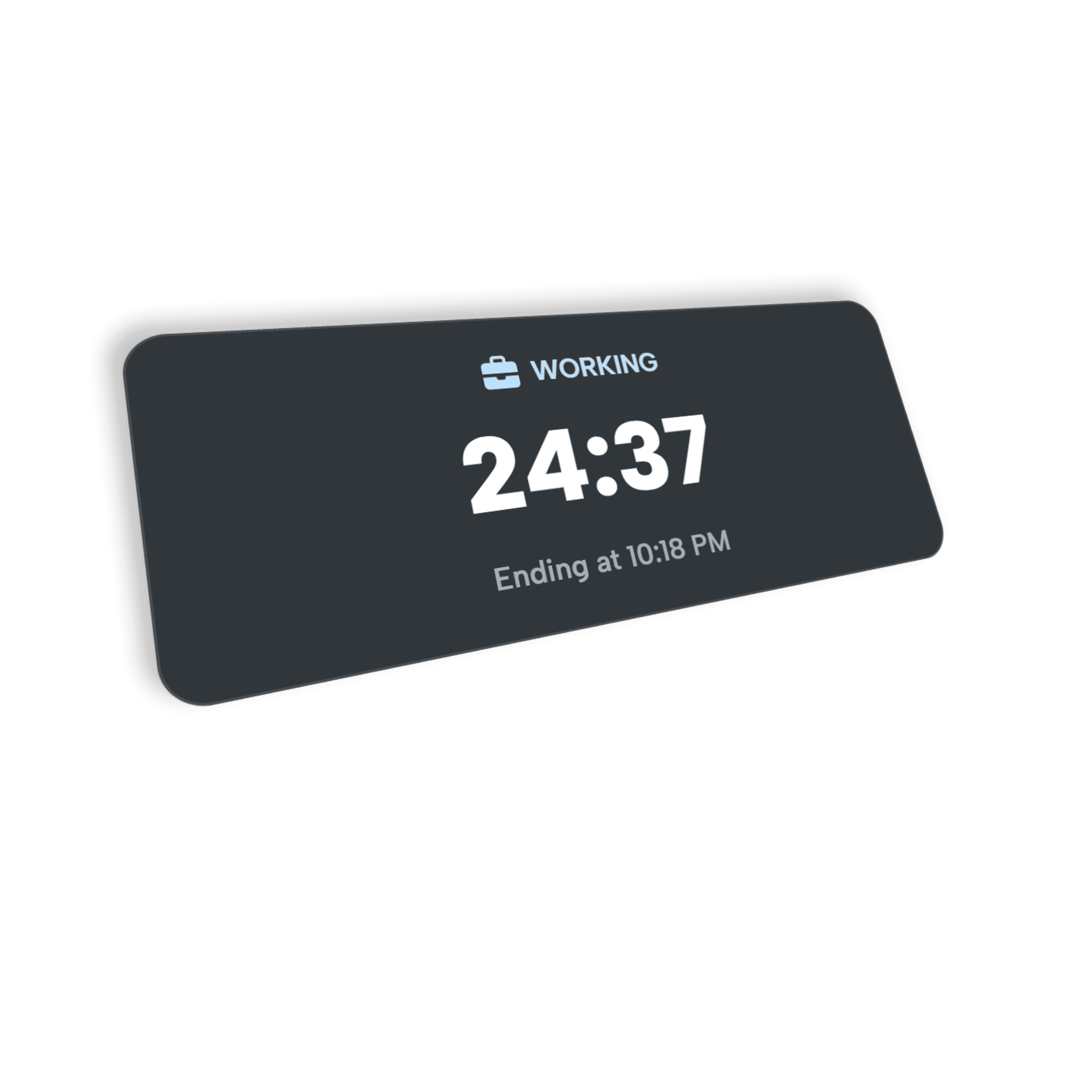 Alarms shouldn't be jarring. We'll add short buffer periods between work and break so you can use both equally while still having time to wrap-up.