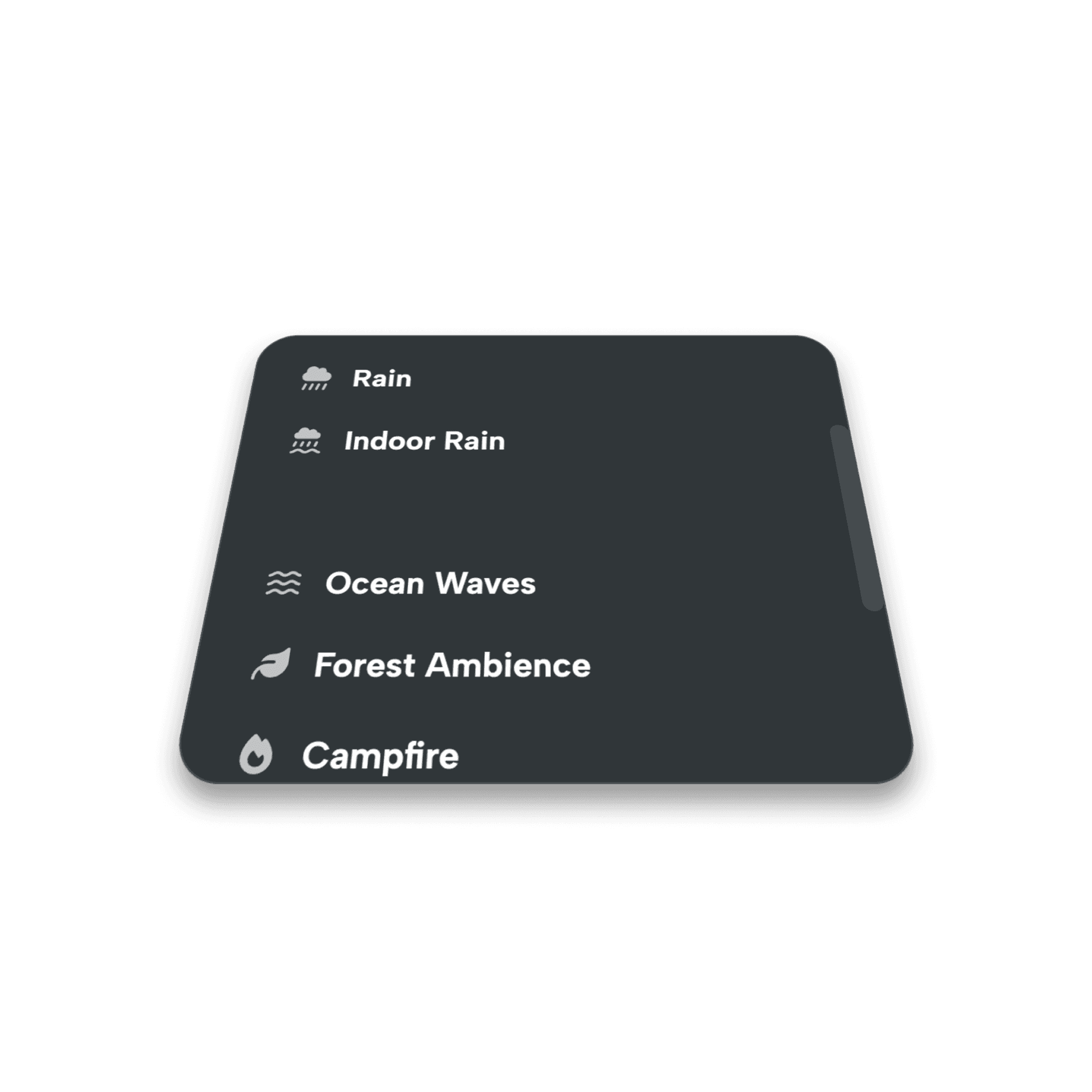 Block out distracting noise while you work. Choose from steady rain, white noise, crackling campfires, and more.